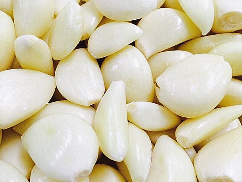 Peeled Garlic we can supply all year round,the fresh season is from June to the last ten-day of August,and the cold storage season is from September to next May.The procedure of producing the peeled garlic:(1)Take the raw material from the factory;(2)Peel the garlic either by the peeling machine or by hand(since the scrap rate by machine is too high,we usually peel the garlic by hand);(3)Classify the peeled garlic by its damage grade,and keep the grade A goods and sell the slightly damaged goods to the domestic market;(4)Disinfect the grade A goods;(5)Float the residual skin with the clean water;(6)Reclassify the goods according to its damage rate;(7)Put the peeled garlic in the cold stoarge;(8)Vacuum pack the peeled garlic in a refrigerated state;(9)Put the vacuumed plastic bag in the cartons.So according these producing part,we can promise the quality of our peeled garlic is good.